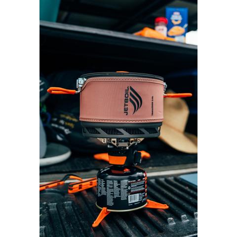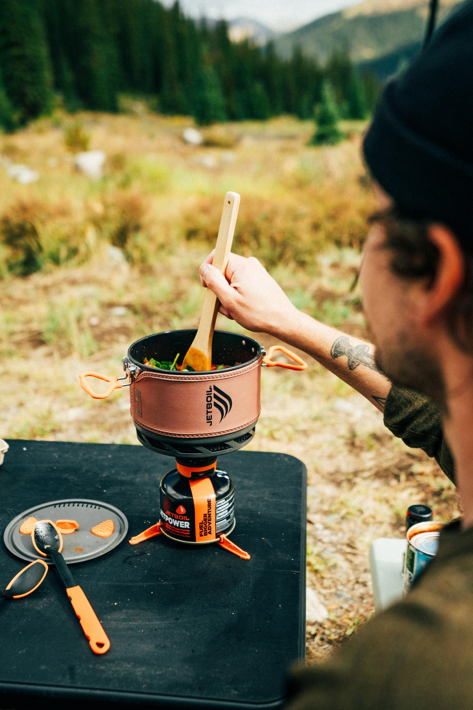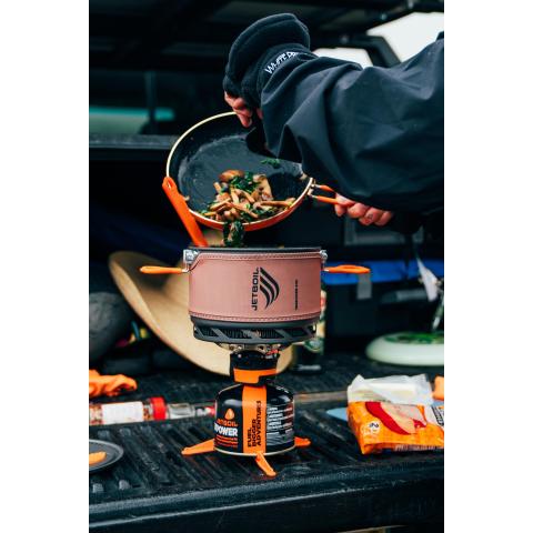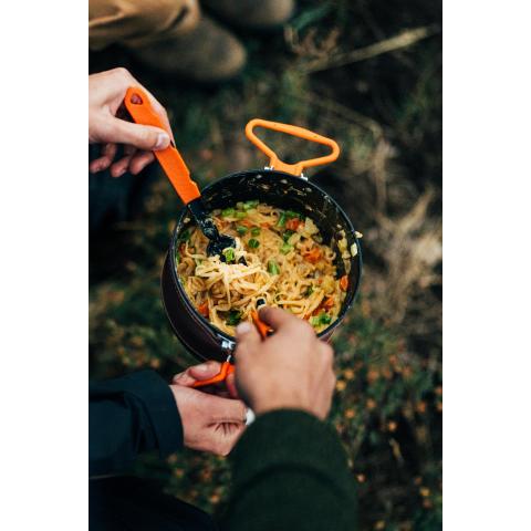Poltinosa liitetään astian pohjaan ja se toimii tavallisella retkikeittimen kaasusäiliöllä (ei sis.).