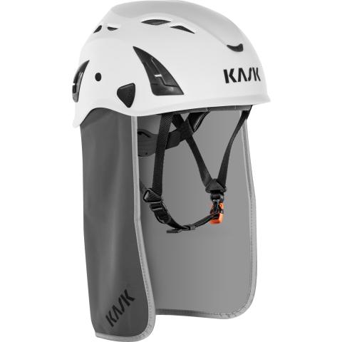 Tuulen- ja vedenpitävä niskasuojus Kask Superplasma -sarjan työkypärien takahelmaan. Tarranauhalla kiinnitettävä hengittävä malli, joka suojaa niskaa ja korvalehtiä tuulelta, vesisateelta, lumisateelta, puupurulta, roiskeilta jne. Sivusuojaus säädettävissä. Suunniteltu käytettäväksi myös kuppikuulosuojainten kanssa. Väri: Harmaa.