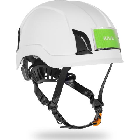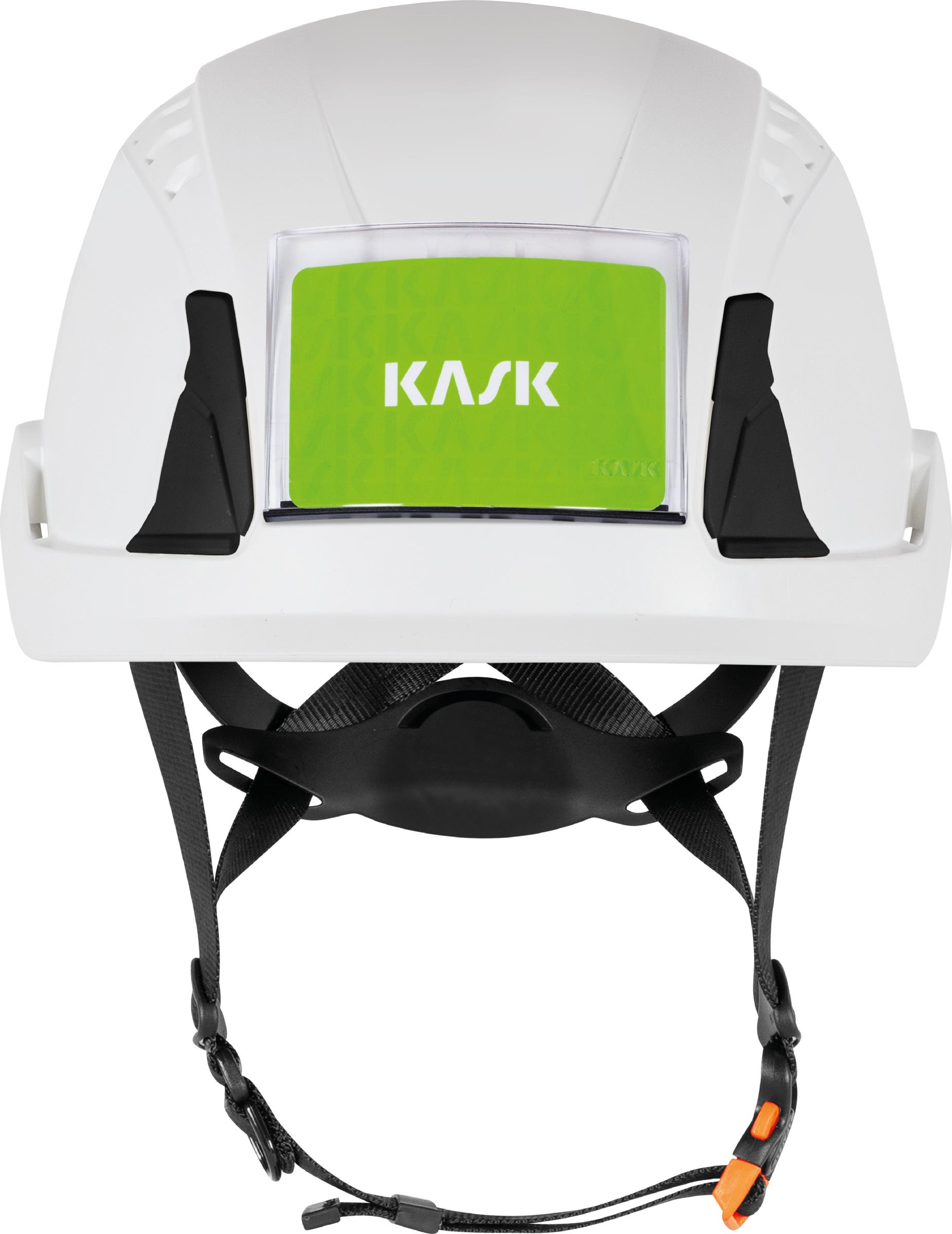 Tunnistetietotasku Kask Primero, Zenith X ja Quantum -sarjojen työkypäriin. Jäykkä malli, joka napsautetaan helposti kypärän etukoloon. Mahdollistaa henkilötietokortin, käyntikortin, yrityslogon, tai muun informaation pitämisen selkeästi näkyvillä työmaalla. Suojaa korttis roiskelta. Sisään mahtuvan kortin koko enintään 93 mm x 67 mm x 2 mm. Ulkopintaa voidaan myös käyttää tarran liimaamiseen.