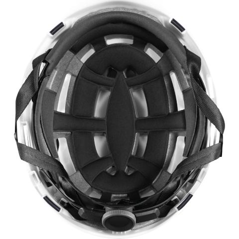 Advanced Light hihnasto pitää kypärän päässä vaikeissakin työasennoissa. Hihnaston laajojen 5 eri säädön ansiosta hyvä yhteensopivuus kuppikuulonsuojainten kanssa. Oranssi leukahihnan soljen väri ilmoittaa, että tämä malli on varustettu EN397 standardin mukaisella leukahihnalla. Leukahihnassa Ring To Hook -lenkki, jonka avulla kypärän voi kiinnittää työvaatetukseen tai varustereppuun, kun se ei ole päässä.