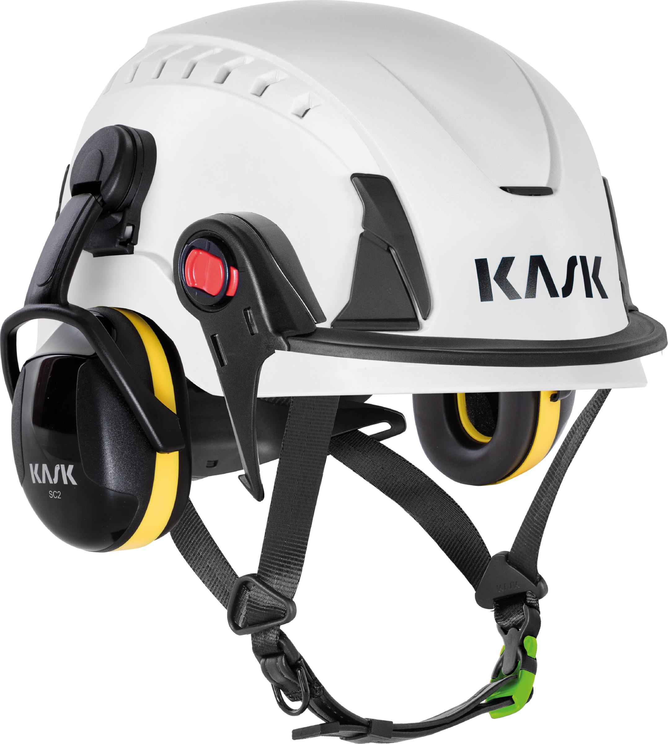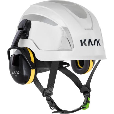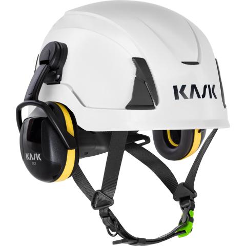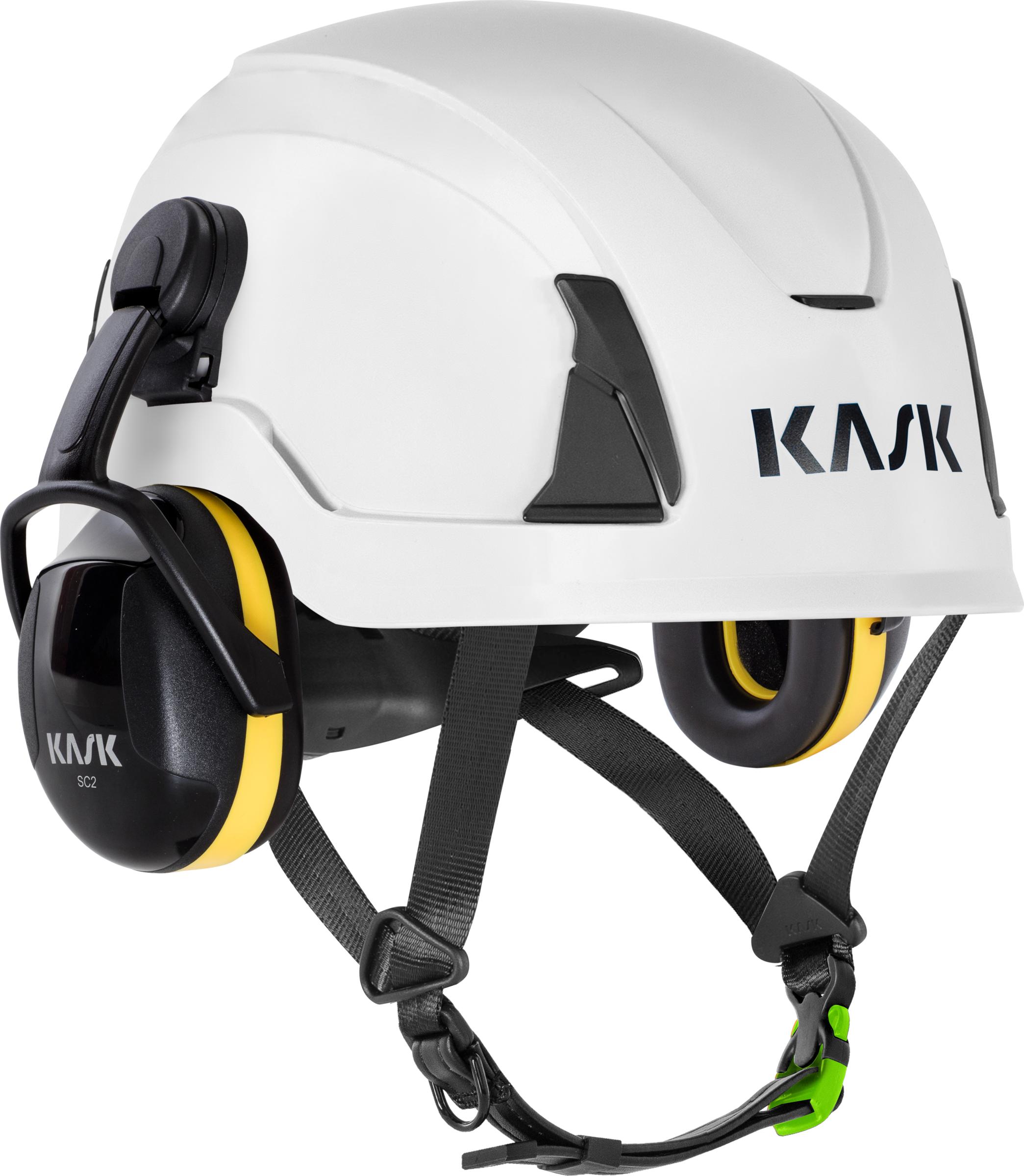 Kaikkien Kask työkypärien kanssa yhteensopiviksi sertifioidut matalaprofiiliset dielectric kuulonsuojaimet matalan/keskitason vaimennusarvolla ja 30 mm Euroslot kiinnikkeillä. Helppo kiinnittää sekä irrottaa työkaluvapaasti kaikista Kask kypäristä.