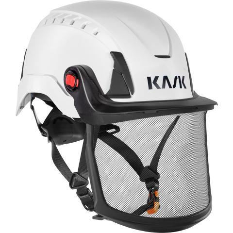 Valmis setti, jossa kevyt Kask Zen MM Metal Mesh Visor metalliverkkovisiiri (WVI00046-), Zen FF Visor Carrier yläkehys (WAC00010-), sekä Zenith Visor Adapters EasyClick pikakiinnikepari (WAC00009-) kehyksen kiinnittämiseksi Kask Zenith X, Zenith X MAX ja Primero -sarjojen työkypäriin. sekä Quantum -sarjan pelastuskypäriin.