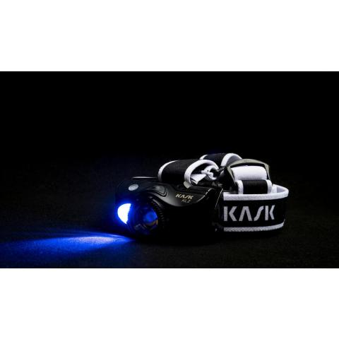 Toimitukseen sisältyy: Otsavalaisin, akku, elastinen pääpanta, kypärän yli vedettävä yläpanta, latausjohto.