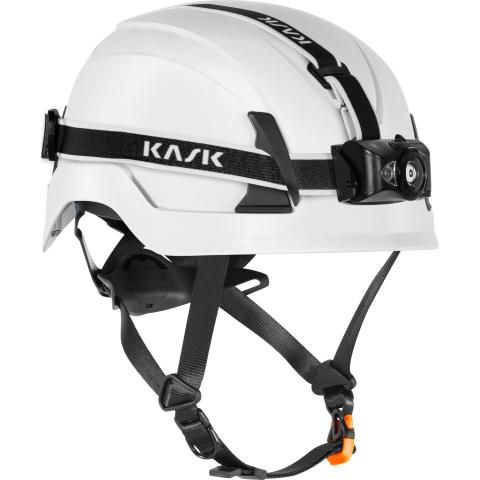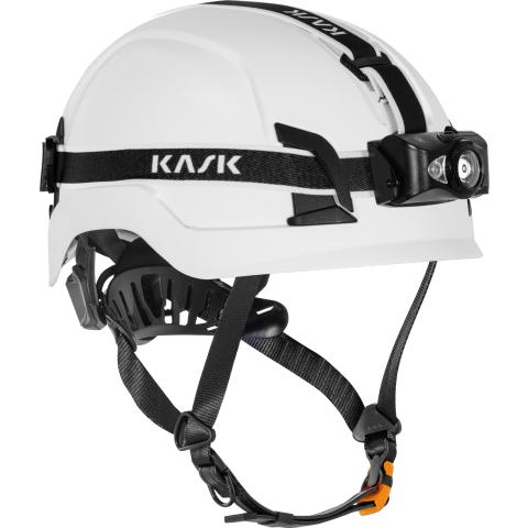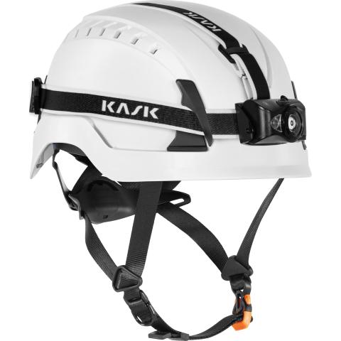 KL-2 otsavalaisinklipsi työkypärään (WAC00065-). Tämän avulla valaisin saadaan helposti kiinnitettyä työkypärän etukoloon, ja mahdollistetaan samaan myös kypärään kiinnitetyn visiirin sujuva käyttäminen.