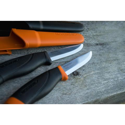 Kumipintainen (TPE) kahva, jonka pinta tarjoaa erinomaisen otteen ja tehostaa työskentelyä. Terän materiaali ruostumaton teräs, eli pysyy terävänä pitkään ja sietää karuja olosuhteita. Kokonaispituus: 240 mm. Terän pituus: 104 mm. Terän paksuus: 3,2 mm. Kokonaispaino 135 g. Burnt orange -värisen polymeeritupen pohjassa tyhjennysreikä ja ylhäällä vyökiinnike, jossa kiinnitysmahdollisuus myös nappiin. Tupen voi myös liittää suoraan kaikkien Morakniv Combi Sheath tuppien kylkeen, jolloin kaksi työpuukkoa kulkee yhdessä mukana.