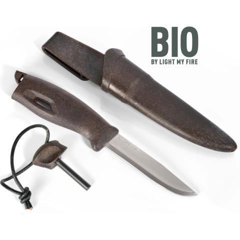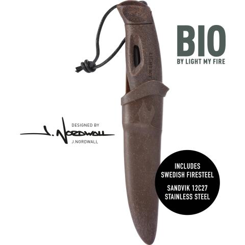 Käteen erinomaisesti istuva puukko, jonka kahvassa alkuperäinen Light My Fire FireSteel tulustikku. Kahvan ja tupen materiaali 100 % kierrätettävä ja BPA-vapaa. Materiaalista 96 % on sokeriruo'osta ja puukuidusta valmistettua biopohjaista muovia (Terralene HDPE elastomeeri), johon on sekoitettu kookoskuituja, ja on Bonsucro ja ISCC sertifioitu.