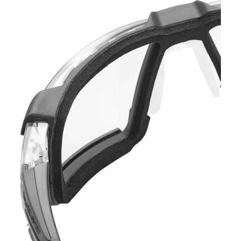 Työkäyttöön suunnitellut, pehmustetulla sekä tuuletetulla kehysrakenteella ja pääremmillä varustetut sankamalliset suojalasit tarjoavat laajan panoraamanäkymän ja erinomaisen käyttömukavuuden. Kirkkaat PLATINUM linssit kestävät huurtumisen ja non-slip-pinnoitetut, muotoon valetut sangat pitävät lasit tukevasti paikoillaan vaativissakin työasennoissa. Pehmeät, nenän muotoihin mukautuvat nenätyynyt viimeistelevät täydellisen istuvuuden. Täysin ruuvi- ja metallivapaa rakenne. Sisäkäyttöön.