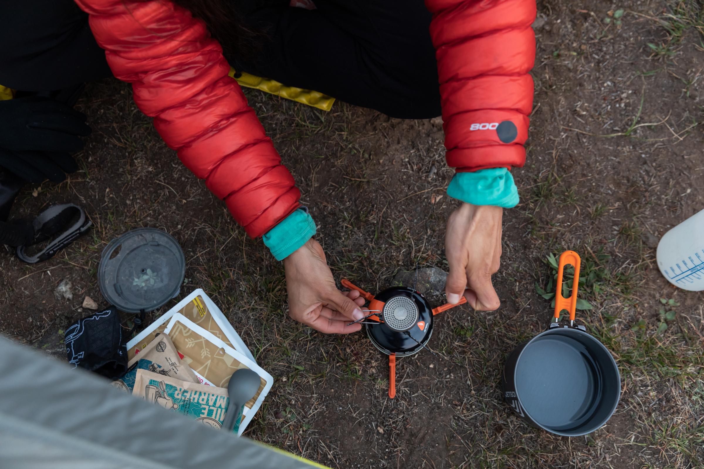 Erittäin suorituskykyinen ja varmatoiminen poltinosa. Patentoitu, tuulisuojattu FluxRing-pohja siirtää lämmön tehokkaasti ja tasaisesti kuppiin. Lämmönsiirtokapasiteetti 4 500 BTU (1,32 kW), jolla keitin keittää 0,5 litraa vettä kiehuvaksi 2 min 30 sekunnissa Jetpower kaasulla! Keittoastiassa on eristetty kahva, joka kääntyy kuljetuksen ajaksi kattilan päälle. Poltin sytytetään esimerkiksi tulitikulla tai tuluksella.