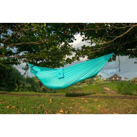 Alkuperäisvalmistajan Compact Hammock on entistäkin helppokäyttöisempi. Riippumatossa oleskelemisen lisäksi nyt myös asentaminen on hauskaa: Compact Hammock Express Setting Bag on uusi ratkaisu, jolla pääset kirjaimellisesti mukavuusalueelle käden käänteessä. Irrotettavan puolikuun muotoisen säilytyspakkauksen lisäksi Compact Hammockissa on nyt myös toinen, kiinteä suorakaiteen muotoinen tasku, johon riippumaton voi pakata. Tilaa riittää hyvin yhdelle henkilölle ja keveytensä ansiosta Compact Hammock kulkee helposti mukana.