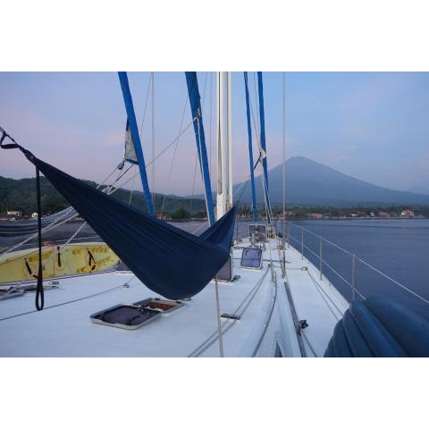 Riippumaton mukana on pienet sulkurenkaat (6kN) kiinnittämistä varten. Kiinnitysköydet eivät sisälly toimitukseen. Suosittelemme lisätarvikkeista löytyviä helppoja ratkaisuja: puita suojaavaa Moon-Strap -nauhaa tai Nautical Ropes -kiinnitysköysiä.