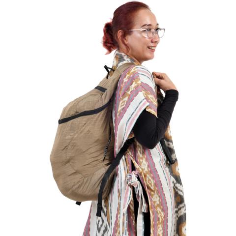 Erittäin pieneen, integroituun kuljetuspussiin pakkautuva tyylikäs reissureppu, kulkee mukana vaikka taskussa. Repun selkäosassa on vetoketjutasku, johon mahtuu 15” kannettava tietokone. Repussa on 4 erillistä lokeroa, jolloin tavarat saa järjesteltyä kätevästi eri osastoihin. Sisäpuolella vielä erillinen tasku arvotavaroita varten. Kevyesti pehmustetut olkaviillekkeet sekä rintaremmi. Unelmavaruste matkailijalle tai päivittäiseen käyttöön kauppareissuille. Materiaali hengittävää nylon silk -laskuvarjokangasta, joten käyttö on miellyttävää kuumissakin olosuhteissa. Kuljetustasku toimii myös esim. kännykkä- tai avaintaskuna. Paino vain 178 g. Tilavuus avattuna 25 L, max. paino 15kg. Konepestävissä. Valmistettu eettisissä ja ihmisoikeutta kunnioittavissa olosuhteissa Balilla. Materiaali- ja valmistusvirhetakuu 2 vuotta.
