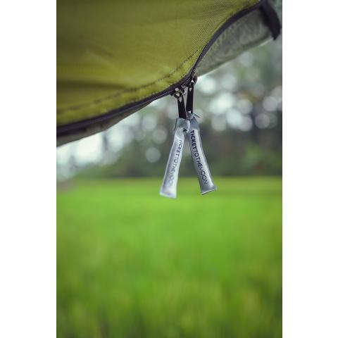 Hyttysverkon silmäkoko on 200 reikää / cm2. Pienetkään ötökät eivät pääse sen läpi, mutta ilma kulkee hyvin. Verkon ripustusnaru pitää myös itse riippumaton optimaalisessa muodossa (2,8 m +/-10 cm). Pakkauspussi toimii säilytyspussina ja sen saa nukkumisen ajaksi kiinni ripustusnaruun.