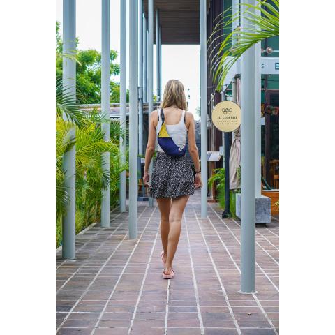 Upcycled Sling Bag on valmistettu korkealaatuisista kierrätysmateriaaleista, jotka ovat jääneet riippumattojen tuotantoprosessista. Tämä tekee jokaisesta laukusta ainutlaatuisen ja samalla auttaa vähentämään jätteen määrää ympäristössämme.
