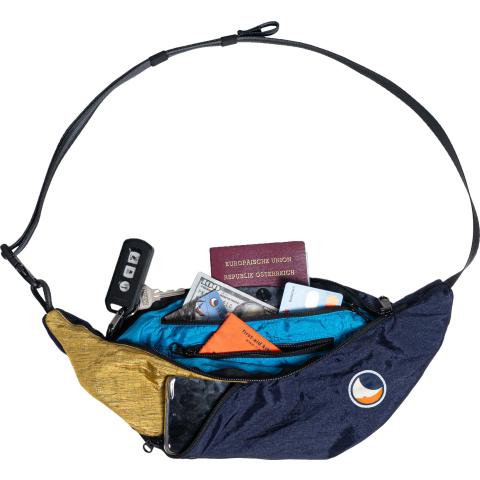 - Upcycled Sling Bag navy blue / Gold