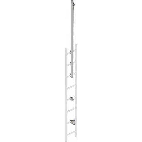 Toimitukseen sisälly: Vaijeri päätöksin molemmissa päissä, ylimpiin tikkaiden puoliin asennettava jatkovarsi joka ulottuu 1,3 m ylimmästä puolesta ylöspäin mahdollistaen turvallisen poistumisen ja järjestelmään ylhäältä tulemisen, ala-. ja yläpään kiinnityspisteet, välivarmistuspisteet ja kiristin.