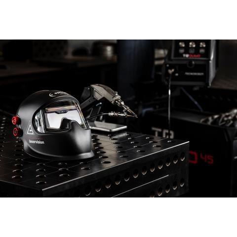 Automaattisesti tummuva lasermaskin, hitsausmaskin ja hiontamaskin yhdistelmä panoraamalinssillä. Ihanteellinen varuste käsin tehtävään laserhitsaukseen ja perinteiseen kaarihitsaukseen, kun halutaan että yhdellä maskilla katetaan kaikki suojaustarpeet ja toimintojen vaihtaminen työtehtävien välillä on tehokasta. Suunniteltu vaativaan ammattikäyttöön.