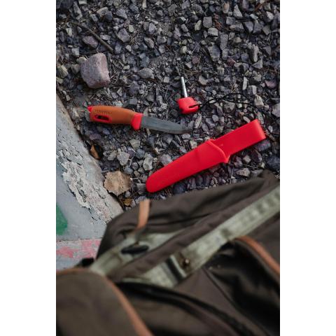 Ergonominen kahva yhdistettynä kestävään ruotsalaiseen ruostumattomasta teräksestä valmistettuun veitsen terään antaa optimaalisen voiman ja hallinnan, kun sinun täytyy käyttää voimaa. Ihanteellinen pienten oksien leikkaamiseen, köysistä vapautumiseen tai esteiden raivaamiseen. Integroitu tulustikku varmistaa, että voit sytyttää tulen nopeasti tarvittaessa. Toimii kaikissa sääolosuhteissa ja märkänäkin.