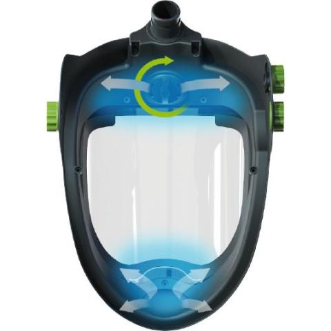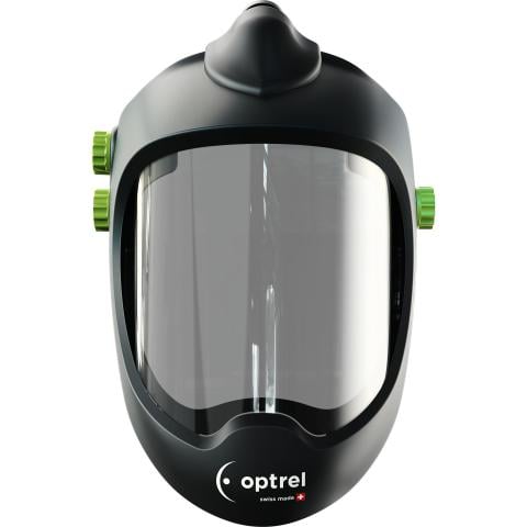 Erittäin laaja panoraamanäkökenttä ja huippuluokan optiikka. Ilmansyöttöletkun liitin suoraan yhteensopiva Optrel e3000X ATEX moottoripuhaltimen letkun kanssa, ja sitä voidaan käyttää TH3P hiukkassuodattimella tai A1B1E1 yhdistelmäsuodattimella. Yhteensopiva myös Optrel Supplied Air -paineilmajärjestelmän syötön kanssa.