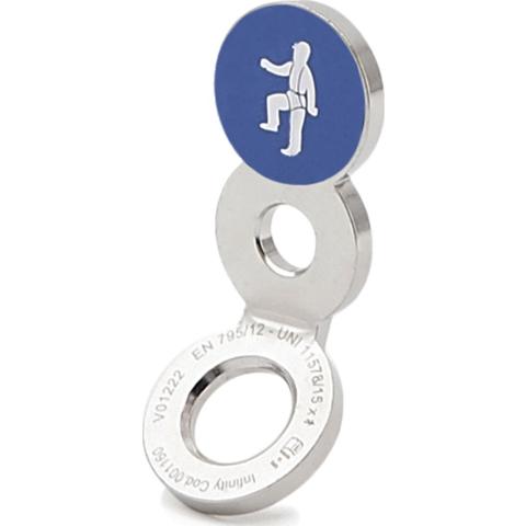 Ankkuripiste putoamissuojaimen kiinnittämiseen. Suuri 21 mm kiinnitysreiän halkaisija tekee käytöstä helppoa ja mahdollistaa joidenkin suurempienkin kiinnittimien käytön. Yläosassa selkeä kuvake ilmoittamassa mihin käyttöön ankkuripiste on tarkoitettu. Kiinnitys taustamateriaaliin soveltuvalla M12 pultilla (ei sis. toimitukseen).