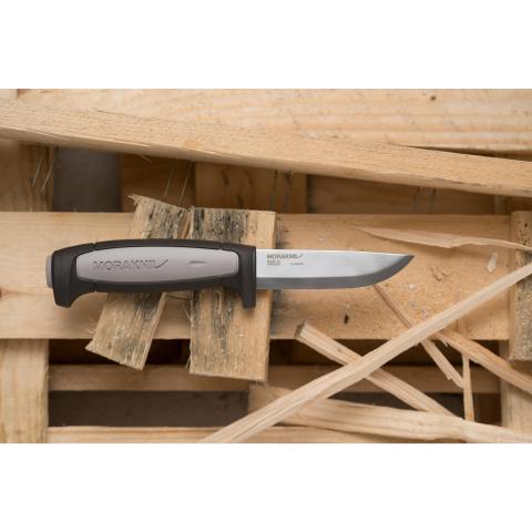 Kokonaispituus: 225 mm. Terän pituus: 104 mm. Terän paksuus: 3,2 mm. Paino 135 g. Musta hyvin suunniteltu muovituppi, jonka voi laittaa vyön lisäksi esim. nappiin ja rinnalle voidaan valita yksi tai useampia muita Morakniv ammattipuukkoja, ja tupet voidaan niputtaa yhteen, jolloin kaikki työkalut on helposti saatavilla.