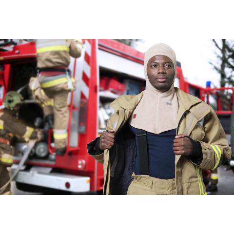 BUFF Safety palokypärähuppu Nanoflex hiukkassuojalla ja lämmönhallintateknologialla. Erittäin joustava ja ihoa vasten miellyttävä Firefighter Particulate balaclava on kehitetty pelastusalan kaikkein vaativimpiin olosuhteisiin, ja vastaamaan myös syöpää aiheuttavien karsinogeenien ja pienhiukkasten tuomilta riskeiltä suojautumiseen.