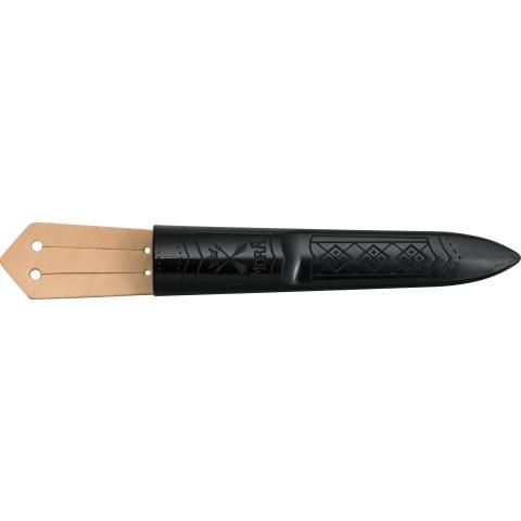 Terän materiaali runsashiilinen teräs. eli terä on helppo teroittaa. Kokonaispituus: 204 mm. Terän pituus: 77 mm. Terän paksuus: 2,0 mm. Kokonaispaino 114 g. Puukon paino 55 g. Polymeerituppi nahkalenkillä sis. toimitukseen. Materiaali- ja valmistusvirhetakuu 10 vuotta. Valmistusmaa Ruotsi.