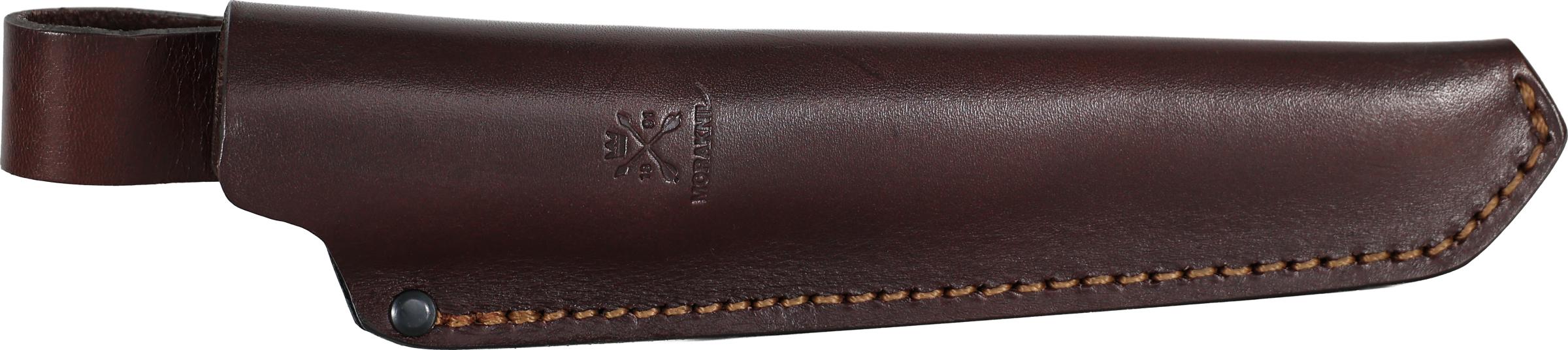 Toimitetaan nahkatupen kanssa. Tupen läppä on avattavissa myös käsineet kädessä. Tupen läppä estää puukon tarkoituksettoman pudottamisen, mutta pitää sen silti heti saatavissa hätätilanteita varten.