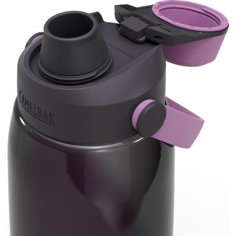 Korkki on helppo avata kääntämällä, ja se aukeaa pullon kantta vasten pysyen auki. Myös täyttäminen hanasta juoma-aukon kautta on nopeaa, siistiä ja käytännöllistä. Kantta ei siis tarvitse avata lainkaan muuten kuin pesua varten. Rakenne myös eliminoi mahdollisuuden kadottaa korkki. Juoma-aukon kulma, mitoitus ja muotoilu on suunniteltu tarjoamaan suuren veden virtaaman, jotta kerta-annos voi tarvittaessa olla riittävä. Suuaukko on kauttaltaan sileä, jolloin huulet menevät aukon reunojen kanssa tiiviisti. Soveltuu myös likaisiin olosuhteisiin: silikonilenkillä toimiva korkki suojaa suuaukkoa ja se on helppo pitää puhtaana.