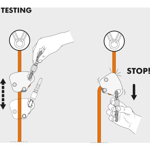 > Go asennossa laite liikkuu vapaasti köydessä, ja lukkiutuu jos sen varaan pudotaan