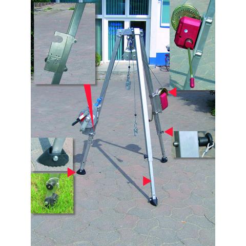 Kolmijalka säiliötyöhön ja vastaaviin olosuhteisiin, joissa henkilö tarvitsee nostaa tai laskea, tai pysäyttää käyttäjän putoaminen. Myös pelastuskäyttöön. Innovatiiviset kaksiasentoiset kumitassut: vaakasuora asento koville ja tiiviille alustoille ja pystysuora, kärjellään seisova asento pehmeille alustoille (mahdollistaa tehokkaan käytön mm. nurmikolla). Jokainen jalka lukitaan erikseen auki jousikuormitteisella lukitustapilla ja teleskooppijalat vedetään sopivaan pituuteen ja lukitaan sokkatapeilla. Tämä malli ei vaadi kettinkejä tms. jalkojen väliin.