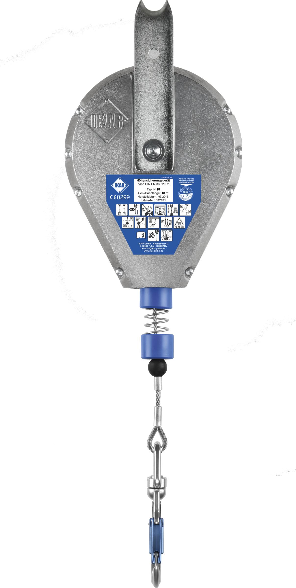18 m automaattisesti sisään kelautuva turvatarrain integroidulla nykäyksenvaimentimella. Pysäyttää putoamisen ja vaimentaa nykäysvoimia. Jämerä ja erittäin kulutuskestävä malli. Ankkuripisteeseen kiinnitystä varten kiinteä lenkki. Voidaan käyttää kaikissa asennoissa. Kuori alumiinia, liitoselin vaijeri. Vaijeri varustettu automaattisesti lukkiutuvalla alumiinisella liitoskarabiinilla.