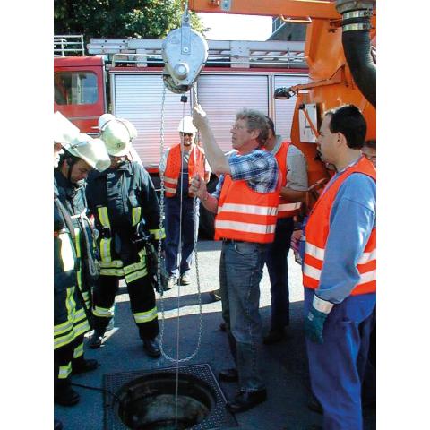 Tajuntansa menettänyt työpari voidaan nostaa nopeasti ja turvallisesti esim. suljetussa tilassa olevan kaasun yläpuolelle tai pois ahtaasta tilasta. Kelan sisällä integroitu nykäyksenvaimennin, joka rajoittaa käyttäjään kohdistuvia nykäysvoimia putoamisen pysäyttämisessä. Kuori alumiinia, liitoselin vaijeri. Vaijeri varustettu automaattisesti lukkiutuvalla liitoskarabiinilla. Käyttäjän alta vaadittava esteistä vapaa turvaetäisyys, kun laite on kiinnitetty suoraan käyttäjän yläpuolelle: 2,4 m. Paino 10,8 kg. Ulkomitat: 450x195x180mm + ketjuvinssi. CE DIN EN360/1496. Tarkastustoiminta nopeasti Suomessa. Käyttöikä 10 vuotta.