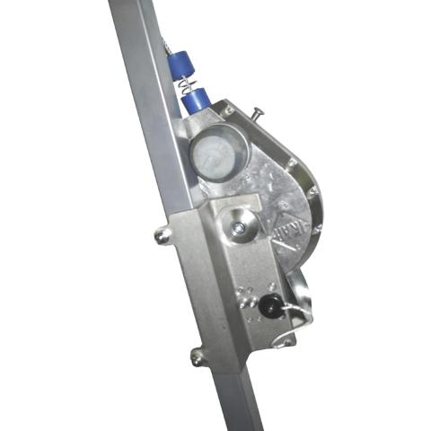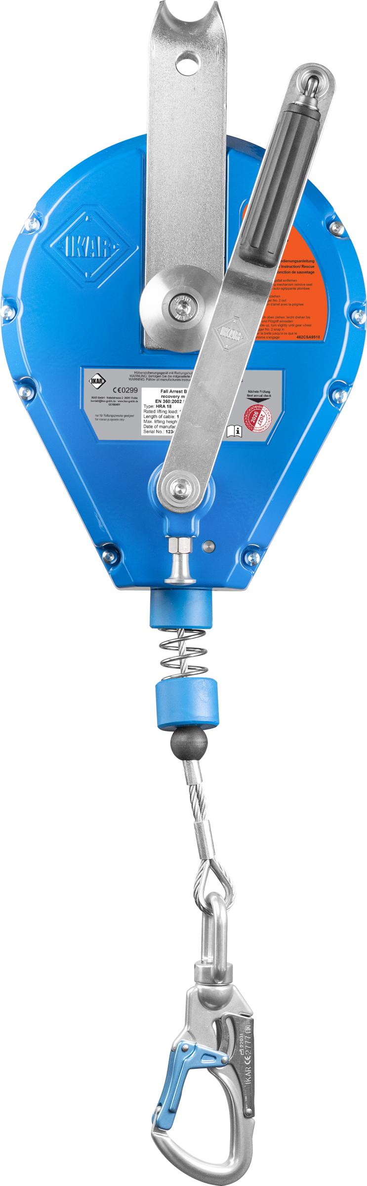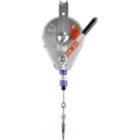 Tajuntansa menettänyt työpari voidaan nostaa nopeasti ja turvallisesti esim. suljetussa tilassa olevan kaasun yläpuolelle tai pois ahtaasta tilasta. Kelan sisällä integroitu nykäyksenvaimennin, joka rajoittaa käyttäjään kohdistuvia nykäysvoimia putoamisen pysäyttämisessä. Kuori alumiinia, liitoselin vaijeri. Vaijeri varustettu automaattisesti lukkiutuvalla liitoskarabiinilla. Käyttäjän alta vaadittava esteistä vapaa turvaetäisyys, kun laite on kiinnitetty suoraan käyttäjän yläpuolelle: 2,4 m. Paino 11,5 kg. Ulkomitat: 570 x 240 x 200 mm. CE DIN EN360/1496. Tarkastustoiminta nopeasti Suomessa. Maksimielinkikä 10 vuotta.