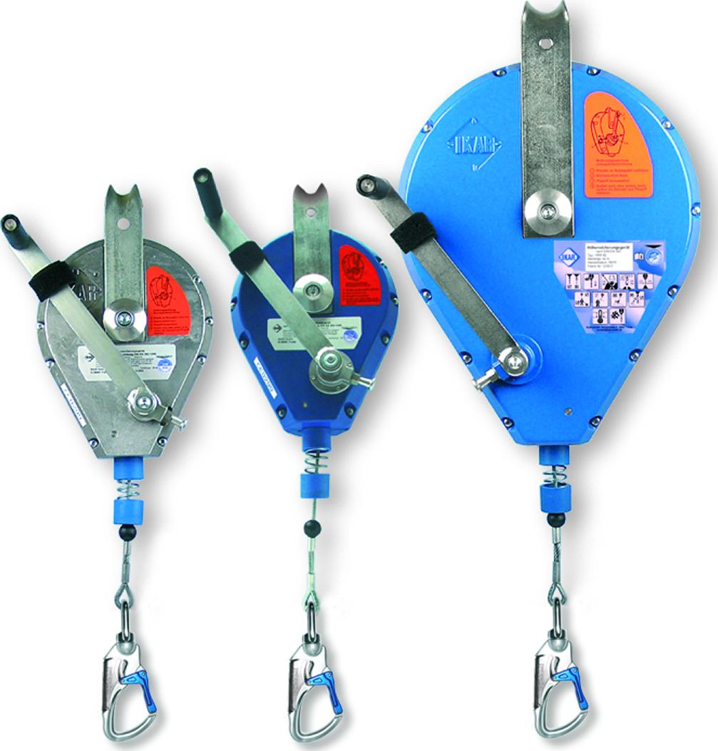 Tajuntansa menettänyt työpari voidaan nostaa nopeasti ja turvallisesti esim. suljetussa tilassa olevan kaasun yläpuolelle tai pois ahtaasta tilasta. Kelan sisällä integroitu nykäyksenvaimennin, joka rajoittaa käyttäjään kohdistuvia nykäysvoimia putoamisen pysäyttämisessä. Kuori alumiinia, liitoselin vaijeri. Käyttäjän alta vaadittava esteistä vapaa turvaetäisyys, kun laite on kiinnitetty suoraan käyttäjän yläpuolelle: 2,4 m. Paino 16 kg. Ulkomitat: 63 cm x 27 cm x 22 cm. CE DIN EN360/1496. Tarkastustoiminta nopeasti Suomessa. Käyttöikä 10 vuotta.
