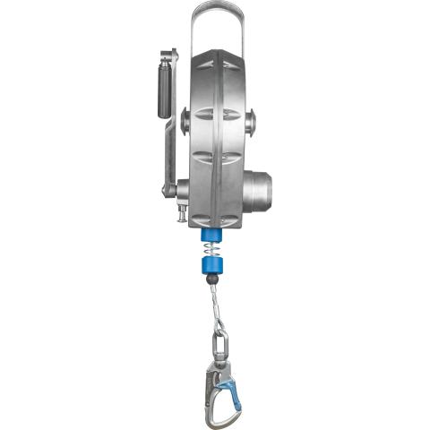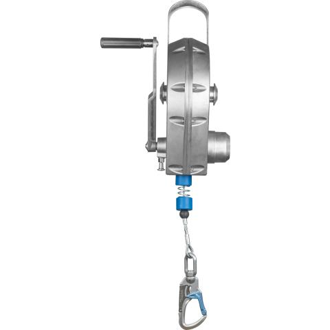 Tajuntansa menettänyt työpari voidaan nostaa nopeasti ja turvallisesti esim. suljetussa tilassa olevan kaasun yläpuolelle tai pois ahtaasta tilasta. Kelan sisällä integroitu nykäyksenvaimennin, joka rajoittaa käyttäjään kohdistuvia nykäysvoimia putoamisen pysäyttämisessä. Kuori alumiinia, liitoselin vaijeri. Vaijeri varustettu automaattisesti lukkiutuvalla liitoskarabiinilla. Käyttäjän alta vaadittava esteistä vapaa turvaetäisyys, kun laite on kiinnitetty suoraan käyttäjän yläpuolelle: 2,4 m. Paino 16 kg. Ulkomitat: 630x275x220mm. CE DIN EN360/1496. Tarkastustoiminta nopeasti Suomessa. Käyttöikä 10 vuotta.