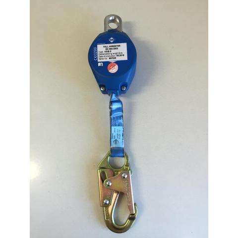 2 m turvatarrain integroidulla nykäyksenvaimentimella. Pysäyttää putoamisen ja pehmentää nykäysvoimia. ANSI standardoitu. Automaattisesti sisään kelautuva. Kiertymisen estävä leikarikiinnitys. Voidaan käyttää kaikissa asennoissa.