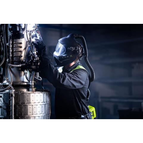 Soveltuu erityisesti pään yläpuolella tapahtuviin töihin sekä hitsaukseen vaikeissa asennoissa. Ihanteellinen monipuolisiin työtehtäviin, joissa vaihdellaan usein kirkkaan linssin ja hitsauslinssin välillä. Maskin sisällä poikkeuksellisen miellyttävä ilmanvirran jakauma.