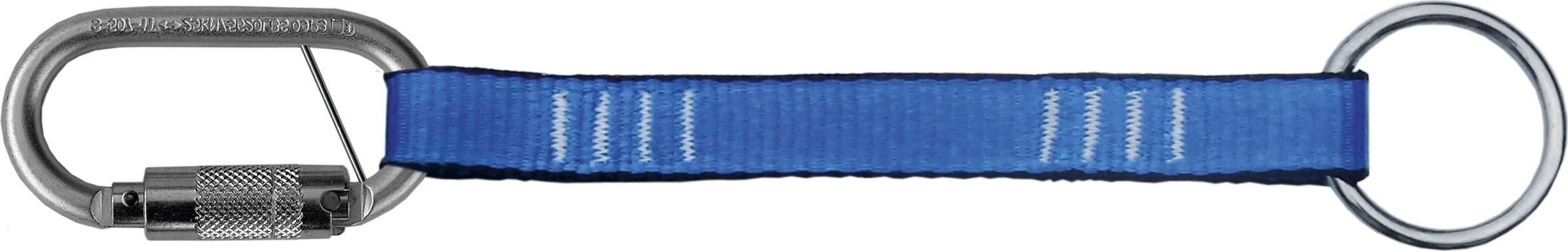 25 mm leveää polyesteriä. Toisessa päässä metallilenkki ja toisessa lukkosulkurengas, joka pysyy poikkitangon ansiosta aina oikeassa asennossa. Liitetään putoamissuojainvaljaan EN 361 standardin mukaiseen rinta- tai selkäkiinnityspisteeseen. CE EN354.
