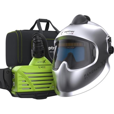 Ready-To-Weld käyttövalmis pakkaus hitsaus- ja hiontatöihin vaativaan ammattikäyttöön. Sisältää Optrel Panoramaxx CLT hitsausmaskin ja Optrel e3000X ATEX moottoripuhallin hengityksensuojaimen, 18h Power Battery akun, sekä e3000X laukun.