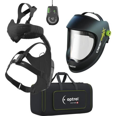 Ready-To-Grind käyttövalmis pakkaus koneelliseen hiontaan ja muihin vastaaviin työtehtäviin vaativassa ammattikäytössä. Laajennettavissa myös hitsauskäyttöön. Sisältää Optrel Clearmaxx kokokasvosuojaimen kirkkaalla linssillä, Swiss Air puhallinmallisen hengityksensuojaimen Comfort Half Mask puolinaamareineen ja pääpantoineen, Control Panel ohjauspaneelin puhaltimelle, sekä laukun.