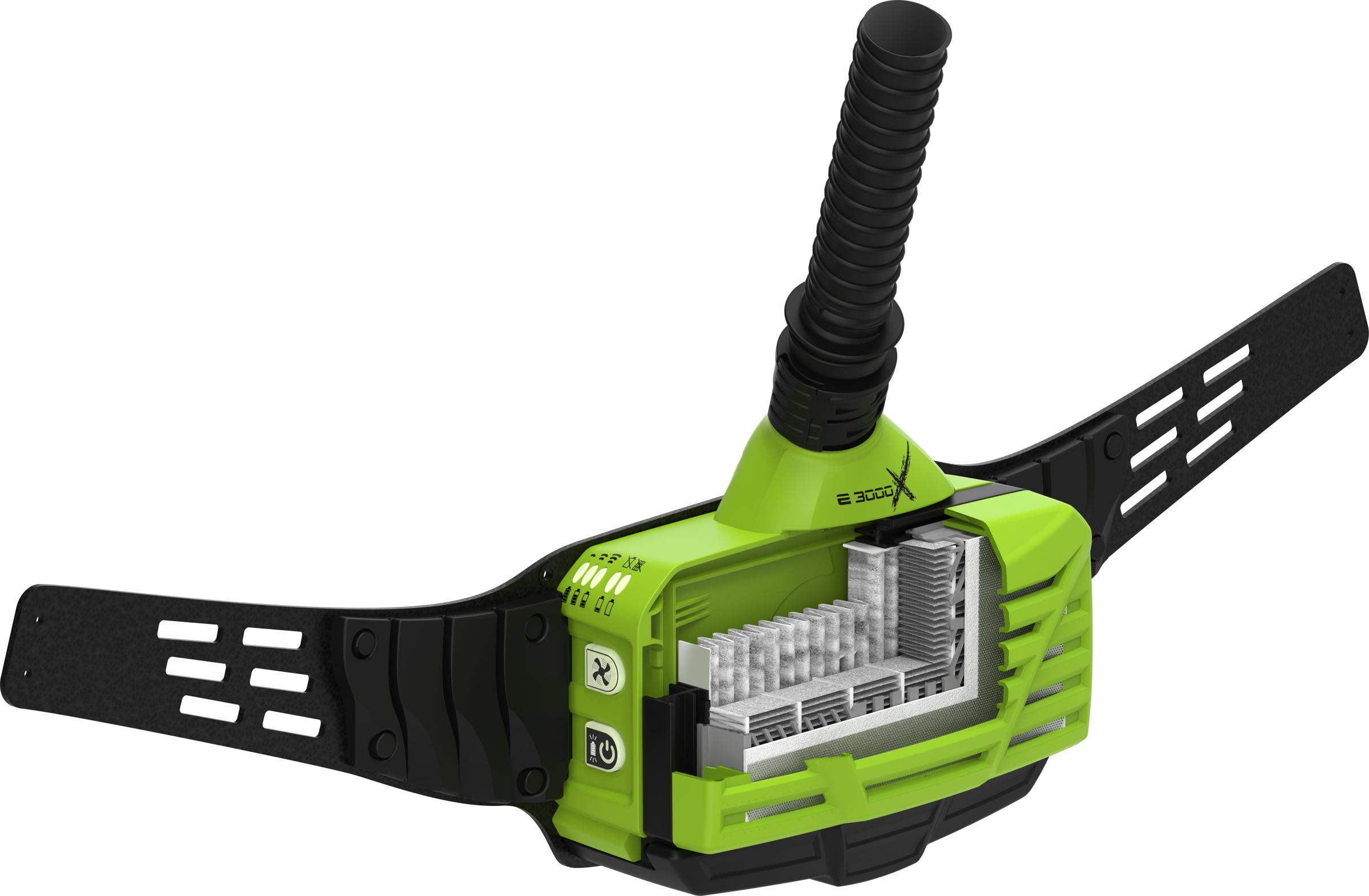 Integroitu ilmavirtasensori ja kolmiportainen ilmavirtasäätö. Jopa 18 tunnin akunkeston ja yhdellä painalluksella saatavilla olevan 240 litran minuuttikohtaisen ilmavirran ansiosta uusi e3000X on markkinoiden tehokkain puhallinsuojainjärjestelmä - täydellinen valinta hengityksensuojaukseen.
