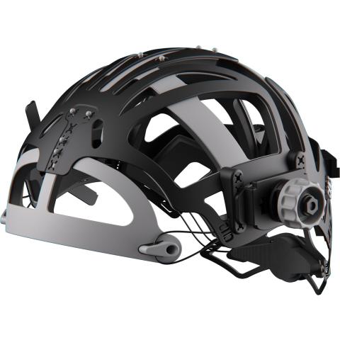 IsoFit -pääpannasto harmailla säätönupeilla. Uniikki Optrel -tuote, joka tarjoaa maksimaalista työergonomiaa. Vaihdettavat pehmusteet.