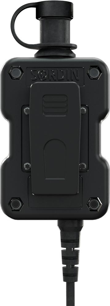 Helppokäyttöinen Push-To-Talk tangenttipainike Sordin kommunikaatiokuulonsuojaimiin. Single Com. Mahdollistaa yhden radion tai matkapuheimen liittämisen kommunikaatiokuulonsuojaimiin.