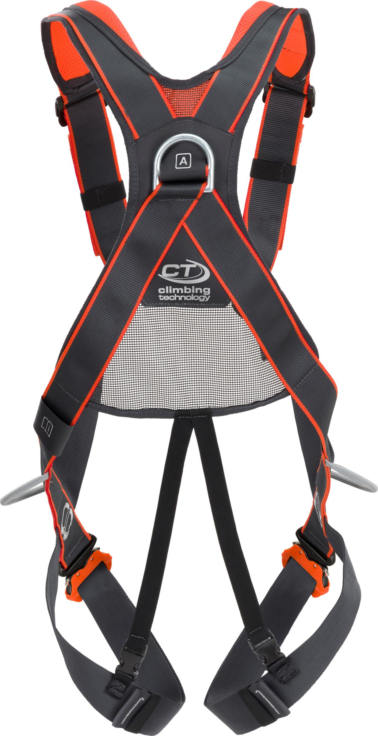 Kaksi putoamisen pysäyttävän järjestelmän kiinnityspistettä: Teräslenkki selässä ja alumiinilenkki rinnassa. Rintapiste pysyy lähellä kehoa toimien hyvin myös esim. tikasvaunukiinnityksessä. Tilavat varustelenkit molemmilla puolilla. Valjaita voi pitää käveltäessä tai autoa ajaessa päällä ilman sulkurengasta. Olkahihnoissa automaattisesti lukkiutuvat soljet.