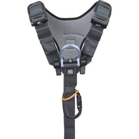 Rinnassa metallinen A-kiinnityspiste putoamisen pysäyttämiseen. Ohuen ja valjaidenmukaisen rakenteen ansiosta lenkki ei juurikaan tule eteen silloin kun sitä ei tarvita. Selässä ergonominen pehmustealue parantamassa käyttömukavuutta ja tekemässä pukemisesta helpompaa. Selkäkiinnityspiste puuttuu, jotta varusterepun, ilmapullojen tms. varusteiden kuljettaminen selässä olisi mahdollista.