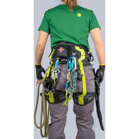 The most versatile tree-care harness of all times. With a variety of rope bridge configurations and optional SRT BRIDGE for safe and comfortable working on single ropes. The innovative 3D Vent Technology, in combination with the wide, semi-rigid padding, ensures unsurpassed hanging comfort and at the same time good breathability. 4 large gear loops, numerous attachment possibilities for gear carabiners as well as a device for suspending a chainsaw round off the complete package of this unique climbing harness.