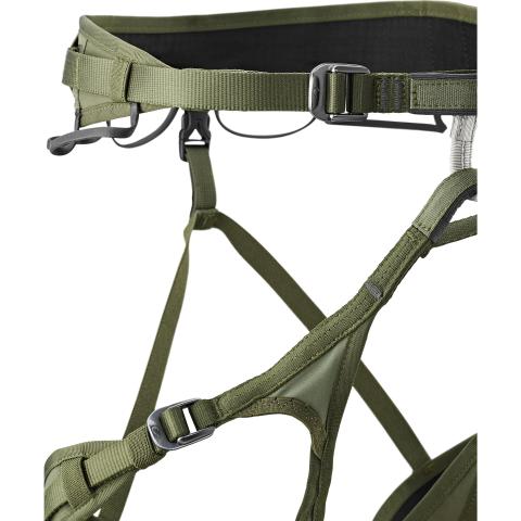 Yhteensä kuusi varustelenkkiä ja kaksi kiinnityskohtaa varustekarabiineille tai jääruuveille tarjoavat runsaasti säilytystilaa ja hyvät mahdollisuudet varusteiden järjestelyyn.