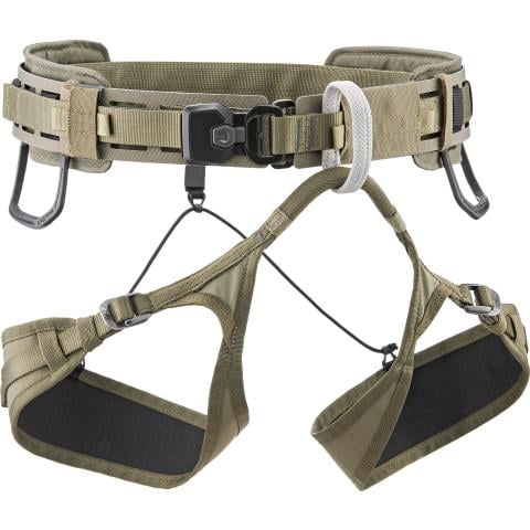 - Kaksi notkeaa varustelenkkiä, jotka voidaan sijoittaa yksilöllisesti valjaiden MOLLE-aukkoihin, varmistavat, että kaikki kiinnitetyt varusteet ovat aina käden ulottuvilla.
