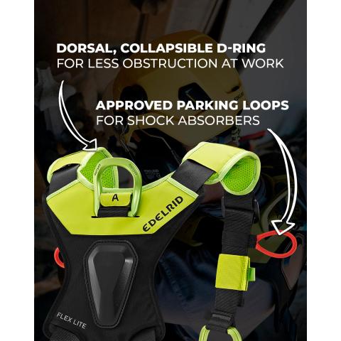 Olkahihnoissa pidikkeet, joihin voi kiinnittää liitosköyden haarojen kiinnittimet (esim. Edelrid Shockstop liitosköyden haarat), tai muun pienen työkalun tai varusteen. Nämä kiinnityspisteet ovat irrotettavissa sekä siirrettävissä haluttuun paikkaan valjaissa. Mikäli kaksihaaraisen nykäyksenvaimenninliitosköyden varaan pudotaan, ja toinen haaroista on kiinni pidikkeessä, niin pidike päästää kiinnittimen nykäisystä vapaaksi, ja sallii liitosköyden nykäyksenvaimentimen toimia suunnitellulla tavalla. Toimii myös muussa yli 5 kg nykäisyssä. Parantaa turvallisuutta työmaalla, käyttömukavuutta ja tehostaa työskentelyä. Pidikkeet on käännetty 90-astetta, jotta käyttö olisi mielekästä. Tämä on mainio ominaisuus, kun työtehtäviin kuuluu tikkailla, rakennustelineillä tai muissa metallirakenteissa liikkumista, tai tarpeita saada työvälineet helposti saavutettavaan paikkaan valjaissa.