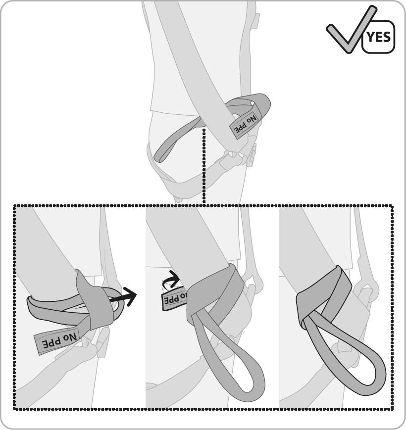 Valmiiksi tehdasasennettuna yksi Additional Gear Loop varustelenkki työkaluille ja muille tarvikkeille. Lenkki on helppoa siirtää valjaissa haluttuun paikkaan.